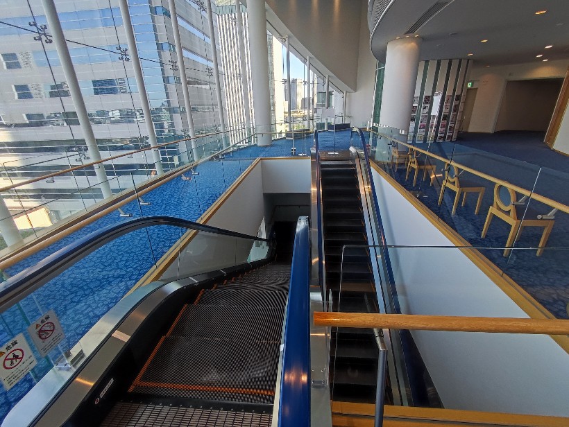 全767席のオーバル(楕円)型ホールです。ホールのみならず受付、エスカレーター、バックヤードの廊下、楽屋、トイレ……など様々なシチュエーションに対応可能です。